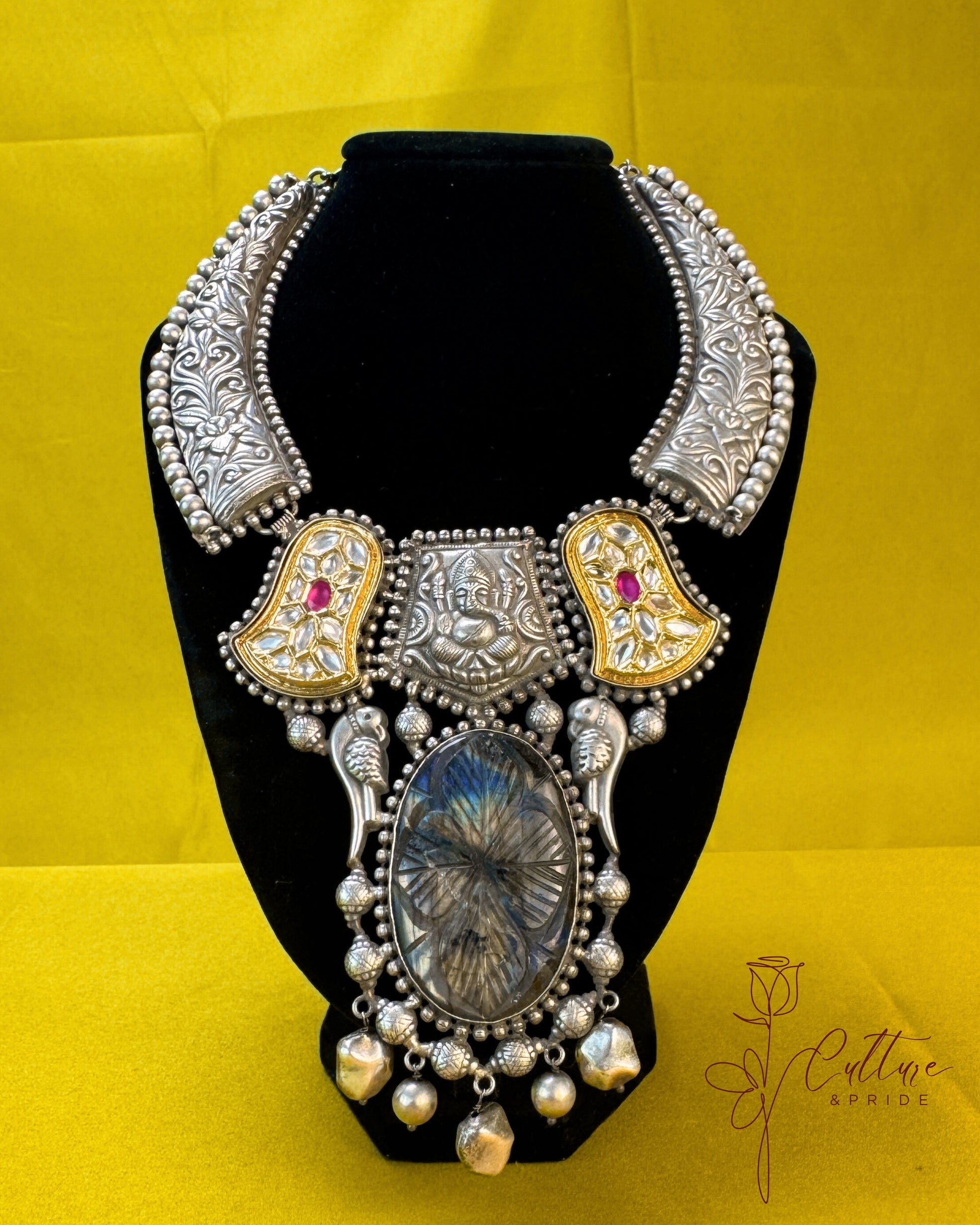 Paired with matching motif earrings, this set celebrates Indian temple jewelry with a powerful contemporary twist. Perfect for Navratri, Garba nights, weddings, and cultural festivals, it’s not just jewelry—it’s heritage you wear.